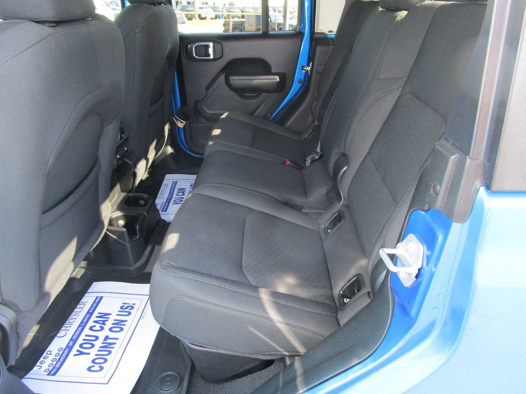 QUICK ORDER PACKAGE 24S SPORT S Engine: 3.6L V6 24V VVT UPG I w/ESS, Transmission: 8-Speed Automatic (850RE), Speed Sensitive Power Locks, Automatic Headlamps, Leather Wrapped Steering Wheel, Molded in Color Bumper w/Accent Color, Body Color Fender Flares (2-Piece), Front 1-Touch Down Power Windows, Sport S, Power Heated Mirrors, Daytime Running Lamp System, Security Alarm, Power Tailgate Lock, Remote Keyless Entry, Sun Visors w/Illuminated Vanity Mirrors, TRANSMISSION: 8-SPEED AUTOMATIC (850RE) Tip Start, Transmission Skid Plate, Selec-Speed Control, POPULAR EQUIPMENT PACKAGE Convenience Group, Universal Garage Door Opener, Trailer Tow Package, Trailer Hitch Zoom, Class IV Hitch Receiver, Heavy Duty Engine Cooling, 240 Amp Alternator, Black 3-Piece Hard Top, Freedom Panel Storage Bag, Rear Window Defroster, Rear Sliding Window, Technology Group, Google Android Auto®, SiriusXM Satellite Radio, SiriusXM Radio Service, For More Info, Call 800-643-2112, GPS Antenna Input, USB Host Flip, Cluster 7.0 TFT Color Display, Integrated Center Stack Radio, 7.0 Touch Screen Display, Air Conditioning w/Auto Temp Control, Integrated Voice Command w/Bluetooth®, Apple CarPlay®, ALPINE PREMIUM AUDIO SYSTEM 220 Amp Alternator, COLD WEATHER GROUP Heated Steering Wheel, Heated Front Seats, SIDE STEPS, ENGINE: 3.6L V6 24V VVT UPG I W/ESS (STD). Jeep Sport S with Hydro Blue Pearlcoat exterior and Black interior features a V6 Cylinder Engine with 285 HP at 6400 RPM*. CLEAN AUTOCHECK!