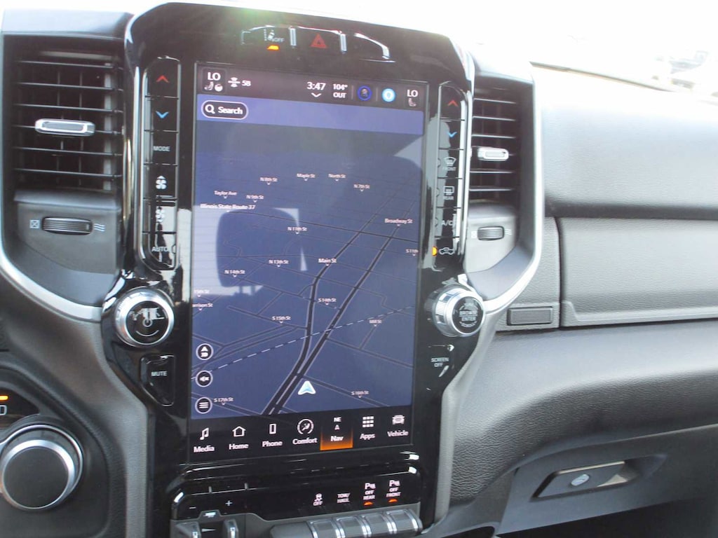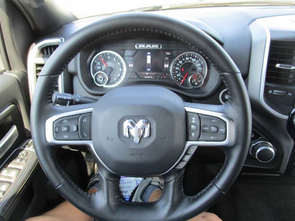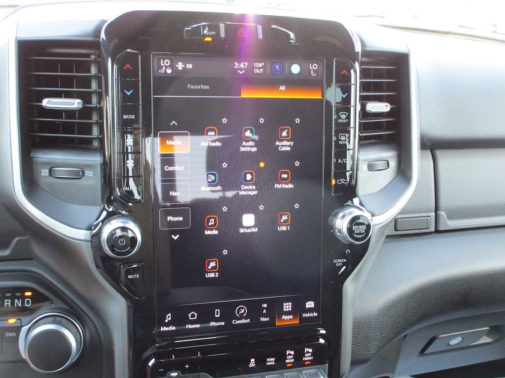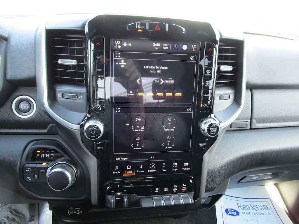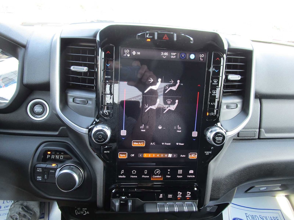 NIGHT EDITION Black Ram Head Tailgate Badge, Wheels: 20 x 8.0 Black Painted Aluminum, Black Wheel Center Hub, Black Headlamp Bezels, Body Color Door Handles, Painted Front Bumper, Painted Rear Bumper, Gloss Black Nostrils/MIC Black Grille, Tires: LT285/60R20E OWL On/Off Road, Black Exterior Truck Badging, Body Color Grille Surround, Black Interior Accents, Black Tail Lamp Bezels, ParkSense Front/Rear Park Assist System, LEVEL 2 EQUIPMENT GROUP Rear Window Defroster, Blind Spot & Cross Path Detection, LED Tail Lamps, Power Adjustable Pedals, Leather Wrapped Steering Wheel, Rear Power Sliding Window, Rear Dome w/On/Off Switch Lamp, Front Fog Lamps, Glove Box Lamp, Auto Power-Folding Mirrors, Footwell Courtesy Lamp, Media Hub w/2 Charge Only USBs, Heated Front Seats, Mirror Running Lights, Heated Steering Wheel, Foam Bottle Insert (Door Trim Panel), Wheels: 18 x 8.0 Polished Aluminum, Dampened Tailgate, Security Alarm, Big Horn IP Badge, Power Adjustable Convex Aux Mirrors, Forward & Reverse Utility Lights, Locking Lower Glove Box, Remote Start System, Radio: Uconnect 5 Nav w/12.0 Display, Google Android Auto®, Off-Road Information Pages, Selectable Tire Fill Alert, Trailer Tow Pages, Disassociated, SAFETY GROUP Auto High Beam Headlamp Control, Rain Sensitive Windshield Wipers, Rear View Auto Dim Mirror, Adaptive Cruise Control w/Stop, Adaptive Steering System, Full Speed Forward Collision Warning Plus, Lane Keep Assist, PAINTED FLAT CAB-LENGTH SIDE STEPS, 9 ALPINE SPEAKERS W/SUBWOOFER, ANTI-SPIN DIFFERENTIAL REAR AXLE, PROTECTION GROUP Transfer Case Skid Plate Shield, Tow Hooks, TRANSMISSION: 8-SPEED AUTO (8HP75-LCV) (STD), ENGINE: 6.4L V8 HEAVY DUTY HEMI MDS (STD). Ram Big Horn with Bright White Clearcoat exterior and Black interior features a 8 Cylinder Engine with 410 HP at 5600 RPM*. CLEAN AUTOCHECK!