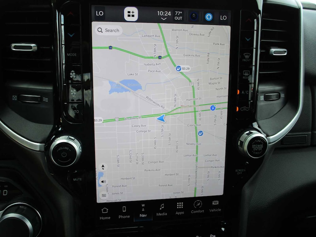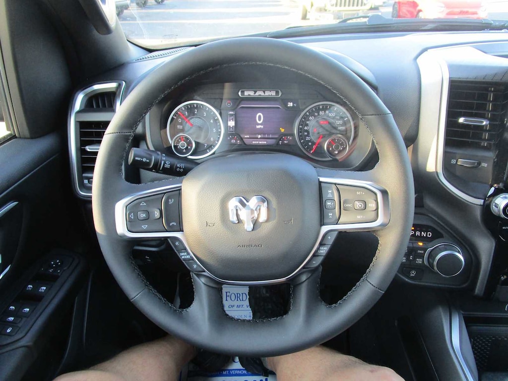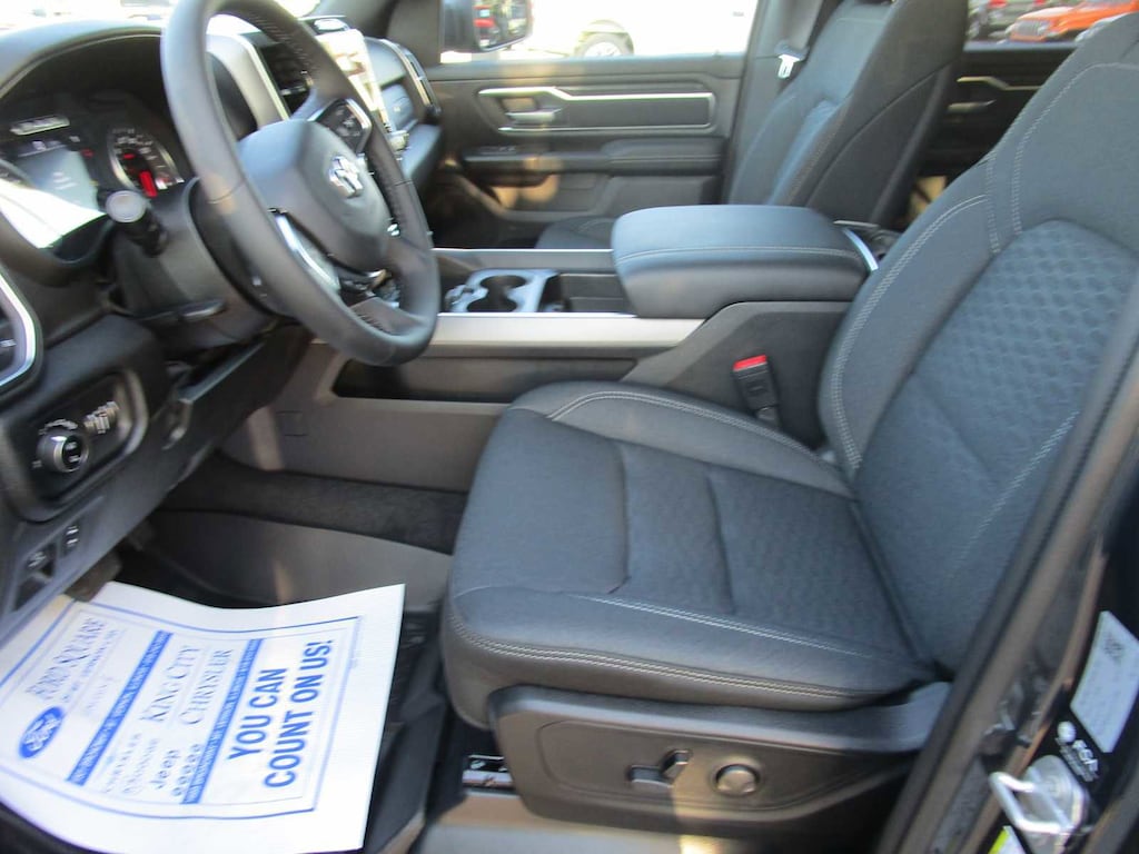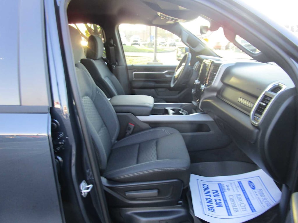 BIG HORN LEVEL 2 EQUIPMENT GROUP SiriusXM Radio Service, Power Adjustable Pedals, Leather Wrapped Steering Wheel, 12 Touchscreen Display, Glove Box Lamp, Auto Power-Folding Mirrors, 115V Auxiliary Rear Power Outlet, Media Hub w/2 Charge Only USBs, Heated Front Seats, Security Alarm, Black Premium Power Mirrors, Premium Overhead Console, 9 Amplified Speakers w/Subwoofer, Disassociated Touchscreen Display, Secondary Active Grille Shutters, Wireless Charging Pad, Body Color Fender Flares, Remote Tailgate Release, 115V Auxiliary Power Outlet, LED Dome Lamp w/On/Off Switch, Universal Garage Door Opener, 2nd Row In Floor Storage Bins, Sun Visors w/Illuminated Vanity Mirrors, LED Footwell Lighting, Rear Window Defroster, Rear View Auto Dim Mirror, Rear Power Sliding Window, GPS Navigation, NIGHT EDITION Tires: 275/55R20 OWL All Season, Bridgestone Brand Tires, Accent Color Premium Power Mirrors, Exterior Mirrors w/Supplemental Signals, Black Headlamp Bezels, Exterior Mirrors Courtesy Lamps, Grille Black Surround Black Mesh, Auto Power-Folding Mirrors, Wheels: 20 x 9.0 Aluminum Painted Clad, Auto Dim Exterior Driver Mirror, Black Exterior Truck Badging, Anti-Spin Differential Rear Axle, Accent Color Door Handles, Accent Color Tailgate Handle, Black Interior Accents, Dual Exhaust w/Black Tips, Body Color Front Bumper, Body Color Rear Bumper w/Step Pads, Black Tail Lamp Bezels, RAM Grille Badge - Black, Black Painted Exterior Mirrors Caps, MOPAR FRONT & REAR RUBBER FLOOR MATS, TRANSMISSION: 8-SPEED AUTOMATIC (8HP75), ENGINE: 5.7L V8 HEMI MDS VVT ETORQUE Active Noise Control System, Heavy Duty Engine Cooling, Passive Tuned Mass Damper, GVWR: 7,100 lbs, Dual Rear Exhaust w/Bright Tips, G/T Exhaust, 18 Aluminum Spare Wheel, 33 Gallon Fuel Tank. Ram Big Horn with Forged Blue Metallic exterior and Black interior features a 8 Cylinder Engine with 305 HP at 6400 RPM*. CLEAN AUTOCHECK!