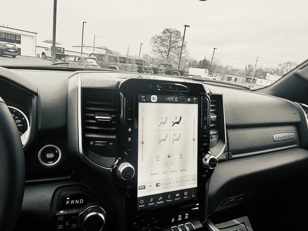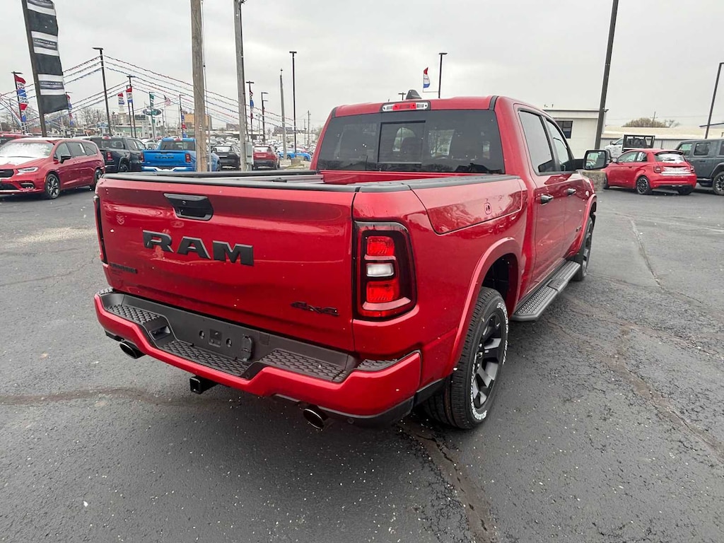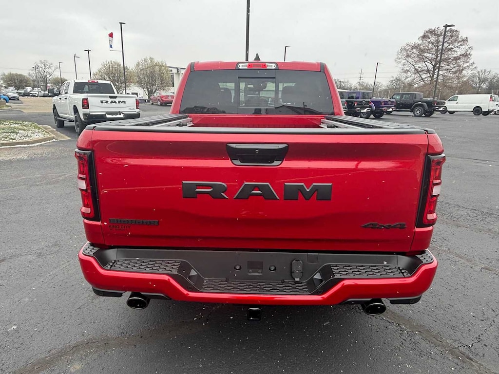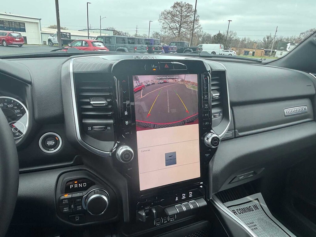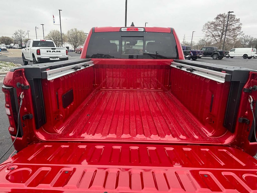 BIG HORN LEVEL 2 EQUIPMENT GROUP SiriusXM Radio Service, Power Adjustable Pedals, Leather Wrapped Steering Wheel, 12 Touchscreen Display, Glove Box Lamp, Auto Power-Folding Mirrors, 115V Auxiliary Rear Power Outlet, Media Hub w/2 Charge Only USBs, Heated Front Seats, Security Alarm, Black Premium Power Mirrors, Premium Overhead Console, 9 Amplified Speakers w/Subwoofer, Disassociated Touchscreen Display, Body Color Fender Flares, Remote Tailgate Release, 115V Auxiliary Power Outlet, LED Dome Lamp w/On/Off Switch, Universal Garage Door Opener, 2nd Row In Floor Storage Bins, Sun Visors w/Illuminated Vanity Mirrors, LED Footwell Lighting, Rear Window Defroster, Rear View Auto Dim Mirror, Rear Power Sliding Window, GPS Navigation, Overhead LED Lamps, Wheels: 20 x 9 Aluminum Chrome Clad, ENGINE: 5.7L V8 HEMI MDS VVT ETORQUE Active Noise Control System, Heavy Duty Engine Cooling, Passive Tuned Mass Damper, GVWR: 7,100 lbs, Dual Rear Exhaust w/Bright Tips, G/T Exhaust, 18 Aluminum Spare Wheel, NIGHT EDITION Tires: 275/55R20 OWL All Season, Bridgestone Brand Tires, Accent Color Premium Power Mirrors, Exterior Mirrors w/Supplemental Signals, Black Headlamp Bezels, Exterior Mirrors Courtesy Lamps, Grille Black Surround Black Mesh, Auto Power-Folding Mirrors, Wheels: 20 x 9.0 Aluminum Painted Clad, Auto Dim Exterior Driver Mirror, Black Exterior Truck Badging, Anti-Spin Differential Rear Axle, Accent Color Door Handles, Accent Color Tailgate Handle, Black Interior Accents, Dual Exhaust w/Black Tips, Body Color Front Bumper, Body Color Rear Bumper w/Step Pads, Black Tail Lamp Bezels, RAM Grille Badge - Black, Black Painted Exterior Mirrors Caps, MOPAR BLACK TUBULAR SIDE STEPS, MOPAR FRONT & REAR RUBBER FLOOR MATS, TRANSMISSION: 8-SPEED AUTOMATIC (8HP75). Ram Big Horn with Molten Red Pearlcoat exterior and Black interior features a 8 Cylinder Engine with 395 HP at 5600 RPM*. CLEAN AUTOCHECK!