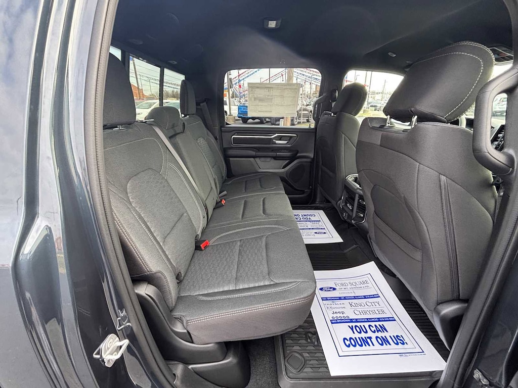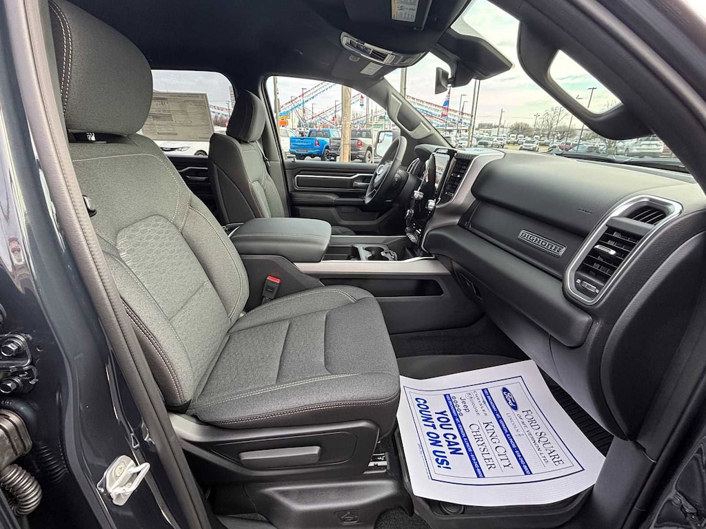 ENGINE: 5.7L V8 HEMI MDS VVT ETORQUE Active Noise Control System, Heavy Duty Engine Cooling, Passive Tuned Mass Damper, GVWR: 7,100 lbs, Dual Rear Exhaust w/Bright Tips, G/T Exhaust, 18 Aluminum Spare Wheel, BIG HORN LEVEL 2 EQUIPMENT GROUP SiriusXM Radio Service, Power Adjustable Pedals, Leather Wrapped Steering Wheel, 12 Touchscreen Display, Glove Box Lamp, Auto Power-Folding Mirrors, 115V Auxiliary Rear Power Outlet, Media Hub w/2 Charge Only USBs, Heated Front Seats, Security Alarm, Black Premium Power Mirrors, Premium Overhead Console, 9 Amplified Speakers w/Subwoofer, Disassociated Touchscreen Display, Body Color Fender Flares, Remote Tailgate Release, 115V Auxiliary Power Outlet, LED Dome Lamp w/On/Off Switch, Universal Garage Door Opener, 2nd Row In Floor Storage Bins, Sun Visors w/Illuminated Vanity Mirrors, LED Footwell Lighting, Rear Window Defroster, Rear View Auto Dim Mirror, Rear Power Sliding Window, GPS Navigation, Overhead LED Lamps, Wheels: 20 x 9 Aluminum Chrome Clad, WHEEL TO WHEEL SIDE STEPS, ANTI-SPIN DIFFERENTIAL REAR AXLE, MOPAR FRONT & REAR RUBBER FLOOR MATS, TRANSMISSION: 8-SPEED AUTOMATIC (8HP75). Ram Big Horn with Forged Blue Metallic exterior and Black interior features a 8 Cylinder Engine with 395 HP at 5600 RPM*. CLEAN AUTOCHECK!