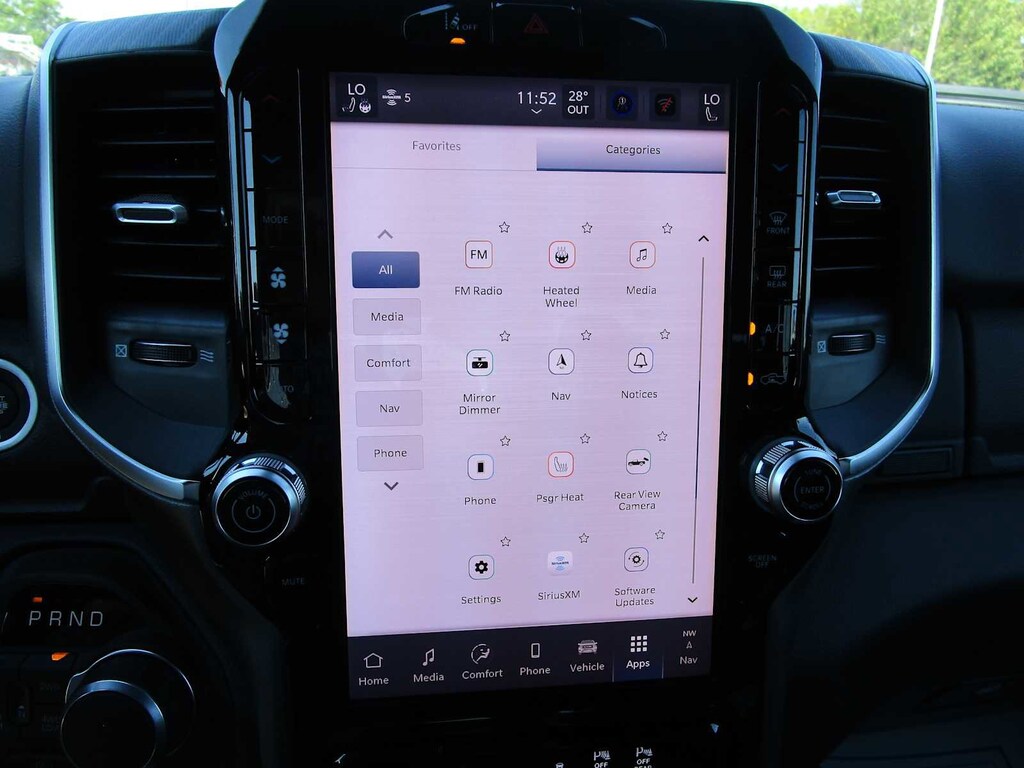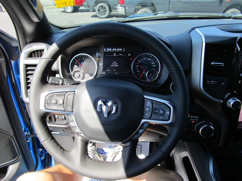 BIG HORN LEVEL 2 EQUIPMENT GROUP SiriusXM Radio Service, Power Adjustable Pedals, Leather Wrapped Steering Wheel, 12 Touchscreen Display, Glove Box Lamp, Auto Power-Folding Mirrors, 115V Auxiliary Rear Power Outlet, Media Hub w/2 Charge Only USBs, Heated Front Seats, Security Alarm, Black Premium Power Mirrors, Premium Overhead Console, 9 Amplified Speakers w/Subwoofer, Disassociated Touchscreen Display, Secondary Active Grille Shutters, Wireless Charging Pad, Body Color Fender Flares, Remote Tailgate Release, 115V Auxiliary Power Outlet, LED Dome Lamp w/On/Off Switch, Universal Garage Door Opener, 2nd Row In Floor Storage Bins, Sun Visors w/Illuminated Vanity Mirrors, LED Footwell Lighting, Rear Window Defroster, Rear View Auto Dim Mirror, Rear Power Sliding Window, GPS Navigation, NIGHT EDITION Tires: 275/55R20 OWL All Season, Bridgestone Brand Tires, Accent Color Premium Power Mirrors, Exterior Mirrors w/Supplemental Signals, Black Headlamp Bezels, Exterior Mirrors Courtesy Lamps, Grille Black Surround Black Mesh, Auto Power-Folding Mirrors, Wheels: 20 x 9.0 Aluminum Painted Clad, Auto Dim Exterior Driver Mirror, Black Exterior Truck Badging, Anti-Spin Differential Rear Axle, Accent Color Door Handles, Accent Color Tailgate Handle, Black Interior Accents, Dual Exhaust w/Black Tips, Body Color Front Bumper, Body Color Rear Bumper w/Step Pads, Black Tail Lamp Bezels, RAM Grille Badge - Black, Black Painted Exterior Mirrors Caps, MOPAR FRONT & REAR RUBBER FLOOR MATS, TRANSMISSION: 8-SPEED AUTOMATIC (8HP75), ENGINE: 5.7L V8 HEMI MDS VVT ETORQUE Active Noise Control System, Heavy Duty Engine Cooling, Passive Tuned Mass Damper, GVWR: 7,100 lbs, Dual Rear Exhaust w/Bright Tips, G/T Exhaust, 18 Aluminum Spare Wheel, 33 Gallon Fuel Tank. Ram Big Horn with Hydro Blue Pearlcoat exterior and Black interior features a 8 Cylinder Engine with 305 HP at 6400 RPM*. CLEAN AUTOCHECK!