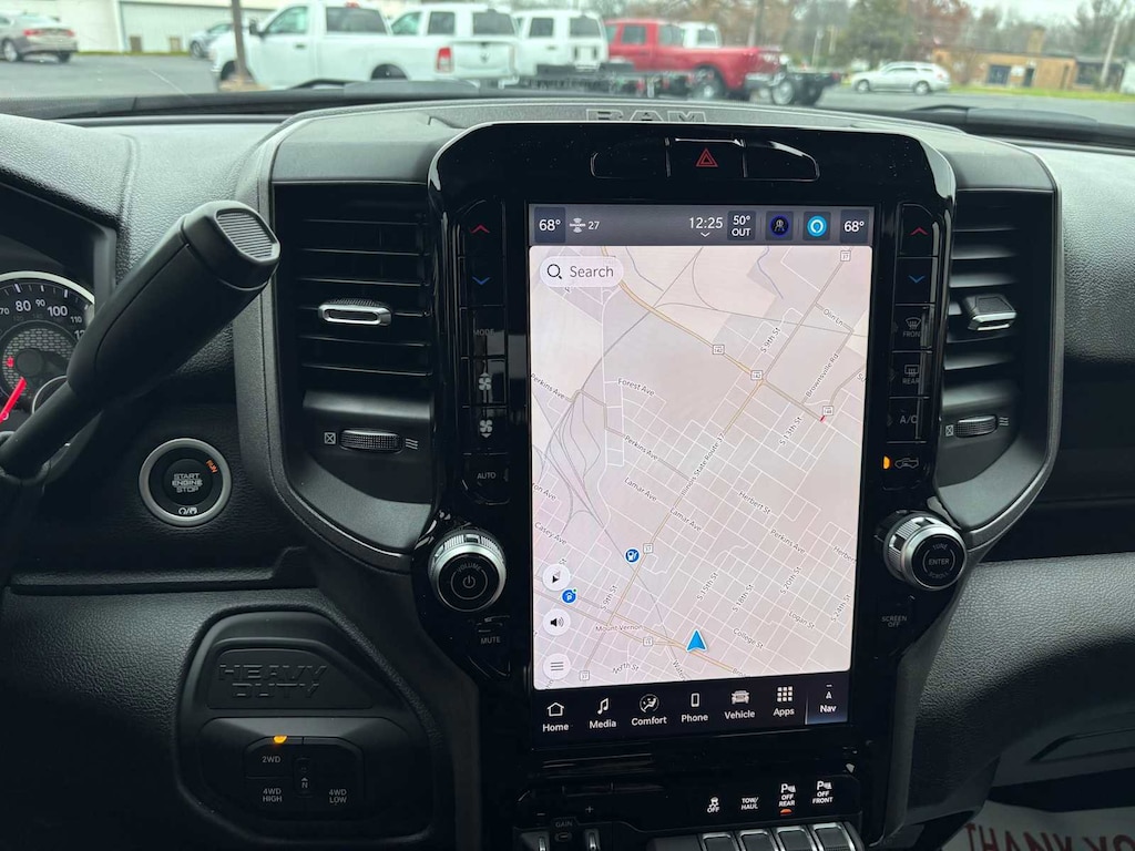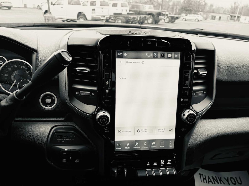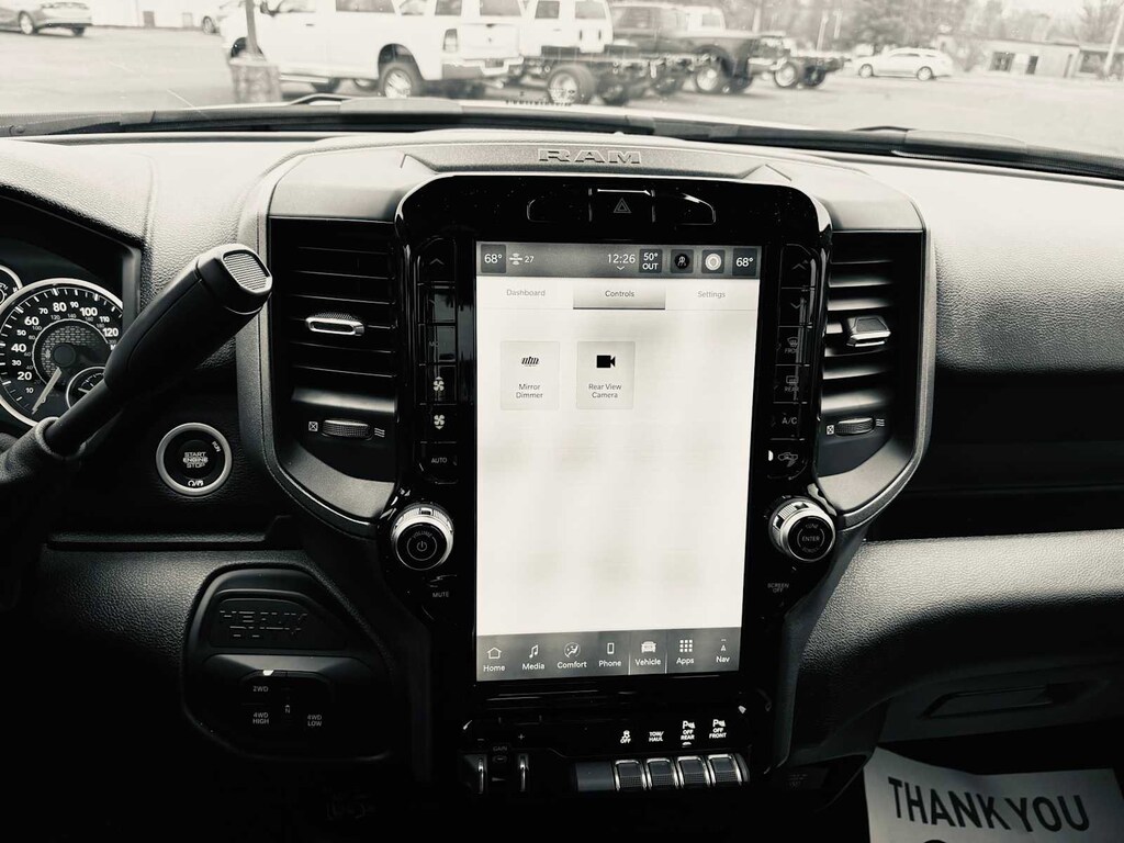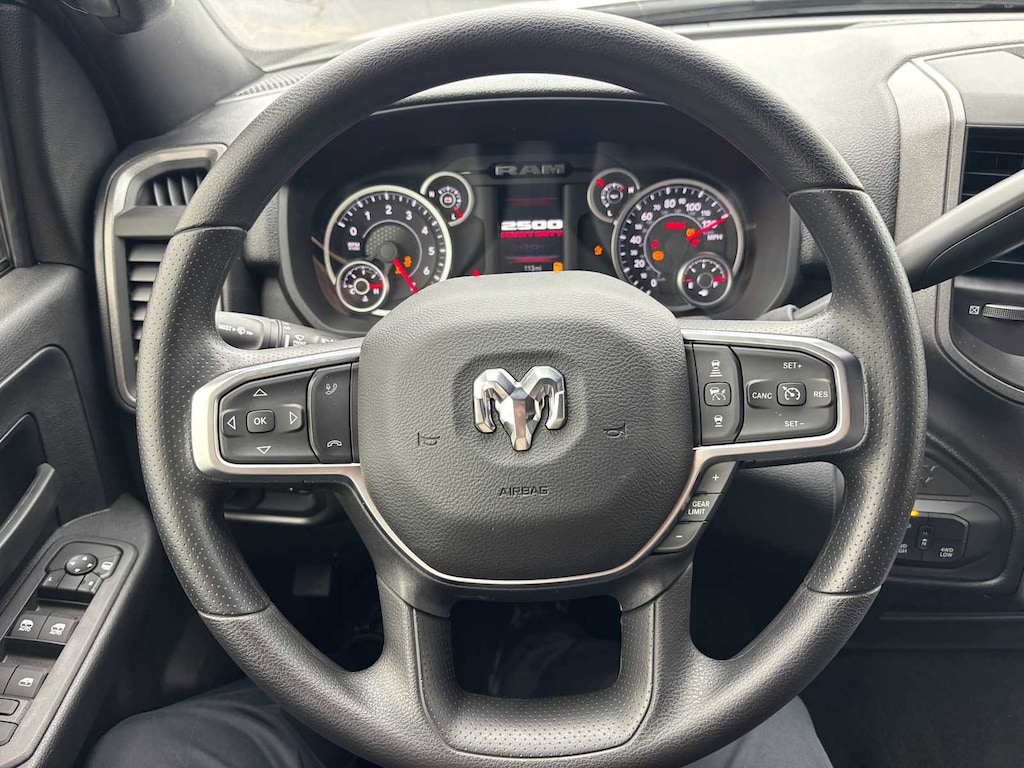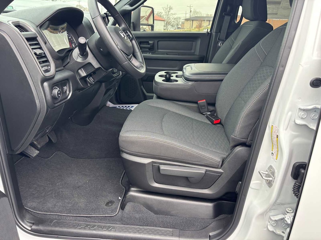 TRADESMAN LEVEL 1 EQUIPMENT GROUP Convenience Group, Emergency Vehicle Alert System (EVAS), 12 Touchscreen Display, Auto Power-Folding Mirrors, Anti-Spin Differential Rear Axle, Mirror Running Lights, Exterior 115V AC Outlet, Alexa Built-In, Power-Adjustable Convex Aux Mirrors, Forward & Reverse Utility Lights, Disassociated Touchscreen Display, 115V Auxiliary Front Power Outlet, Rear View Auto Dim Mirror, Rear Power Sliding Window, Tinted Acoustic Windshield Glass, GPS Navigation, Exterior Mirrors w/Heating Element, MOPAR Black Tubular Side Steps, SiriusXM w/360L, Connected Travel & Traffic Services, Carpet Floor Covering, Off-Road Info Pages, Trailer Tow Pages, 400W Inverter, HD Radio, Power Heated Folding Telescope Mirrors, Radio: Uconnect 5 Nav w/12.0 Display, Exterior Mirrors, WHEELS: 18 X 8.0 BLACK PAINTED STEEL 18 Steel Spare Wheel, Tires: LT275/70R18E BSW AS, TRANSMISSION: 8-SPEED AUTO (8HP75-LCV) (STD), ENGINE: 6.4L V8 HEMI HD (STD), BLACK, CLOTH 40/20/40 BENCH SEAT. Ram Tradesman with Bright White Clearcoat exterior and Black interior features a 8 Cylinder Engine with 405 HP at 5600 RPM*. CLEAN AUTOCHECK! Excellent Condition