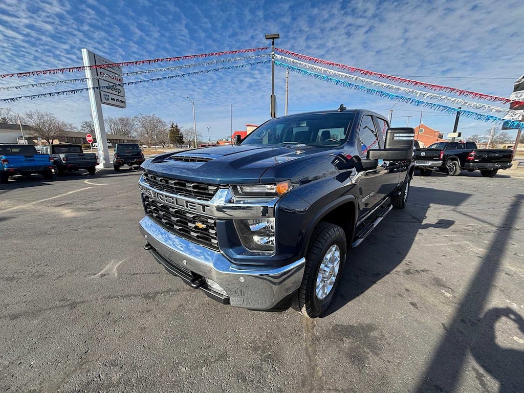 ENGINE, DURAMAX 6.6L TURBO-DIESEL V8, B20-DIESEL COMPATIBLE (445 hp [332 kW] @ 2800 rpm, 910 lb-ft of torque [1220 Nm] @ 1600 rpm), CONVENIENCE PACKAGE includes (CJ2) dual-zone automatic climate control, (A2X) 10-way power driver seat including power lumbar, (KA1) heated driver and passenger seats, (KI3) heated steering wheel, (N37) manual tilt/telescoping steering column, (C49) rear-window defogger, (AVJ) Keyless Open and Start, (NP5) leather-wrapped steering wheel, (N06) steering column lock, (BTV) Remote Start, (UTJ) content theft alarm, (UF2) bed LED cargo area lighting, (T3U) LED fog lamps, (B1J) rear wheelhouse liners, (AZ3) front 40/20/40 split-bench with under-seat storage, (KPA) auxiliary power outlet and (USS) 2 charge-only USB ports for second row, SAFETY PACKAGE includes (UD5) Front and Rear Park Assist, (UKC) Lane Change Alert with Side Blind Zone Alert and (UFG) Rear Cross Traffic Alert, CHEVYTEC SPRAY-ON BEDLINER Black with Chevrolet logo (does not include spray-on liner on tailgate due to Black composite inner panel), MIRRORS, OUTSIDE POWER-ADJUSTABLE VERTICAL TRAILERING WITH HEATED AND AUTO-DIMMING UPPER GLASS lower convex mirrors, turn signal indicators, puddle lamps, perimeter lighting, auxiliary lighting, power folding/manual extending (extends 3.31 [84.25mm]) Includes (DD8) auto-dimming rearview mirror. AUDIO SYSTEM, CHEVROLET INFOTAINMENT 3 SYSTEM, 8 DIAGONAL COLOR TOUCHSCREEN, AM/FM STEREO. Additional features for compatible phones include: Bluetooth® audio streaming for 2 active devices, voice command pass-through to phone, wired Apple CarPlay® and Android Auto® capable. (STD), TRANSMISSION, ALLISON 10-SPEED AUTOMATIC. Chevrolet LT with Northsky Blue Metallic exterior and Jet Black interior features a 8 Cylinder Engine with 401 HP at 5200 RPM*. LOCAL TRADE! CLEAN AUTOCHECK!