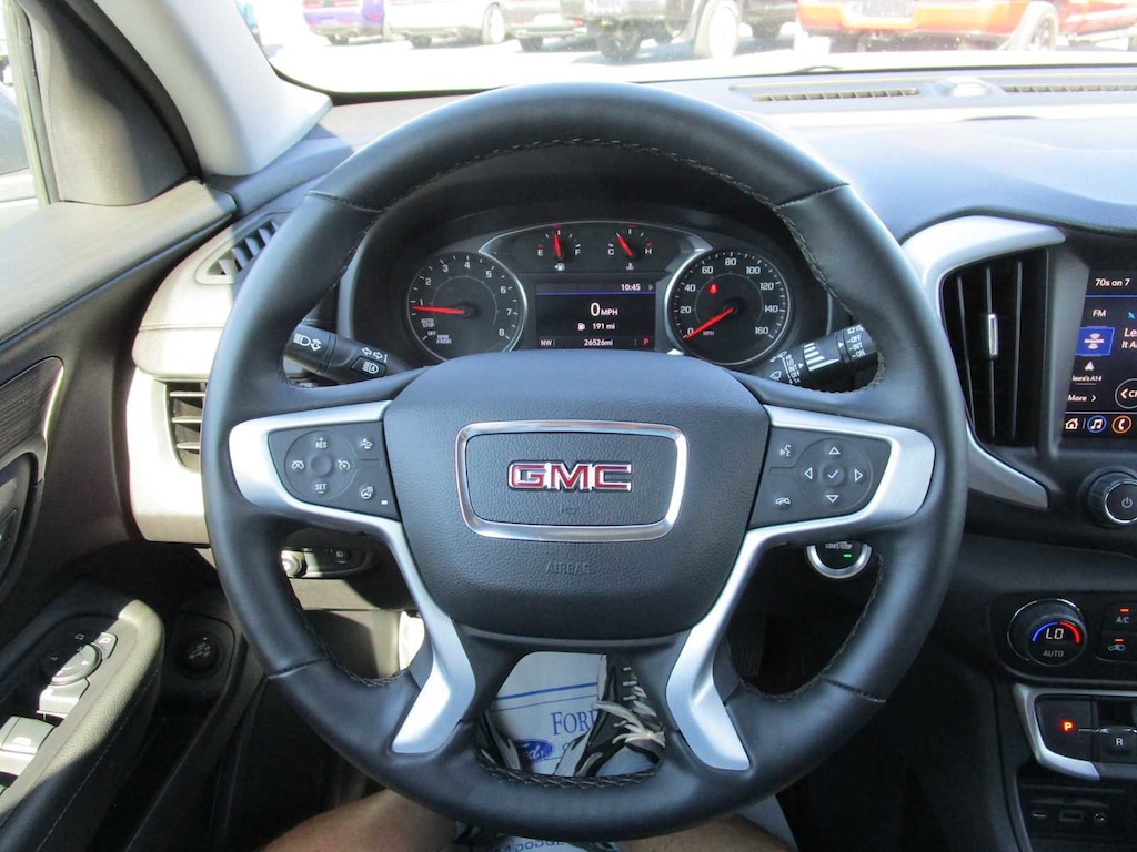 AUDIO SYSTEM, 8 DIAGONAL GMC INFOTAINMENT SYSTEM includes multi-touch display, AM/FM/SiriusXM stereo, Bluetooth® streaming audio for music and most phones, Android Auto® and Apple CarPlay® capability for compatible phones, advanced voice recognition, in-vehicle apps, personalized profiles for infotainment and vehicle settings (STD), ENGINE, 1.5L TURBO DOHC 4-CYLINDER, SIDI, VVT (175 hp [131.3 kW] @ 5800 rpm, 203 lb-ft of torque [275.0 N-m] @ 2000 - 4000 rpm) (STD), TRANSMISSION, 9-SPEED AUTOMATIC 9T45, ELECTRONICALLY-CONTROLLED WITH OVERDRIVE (STD). GMC SLT with Sterling Metallic exterior and Jet Black interior features a 4 Cylinder Engine with 175 HP at 5800 RPM*. CLEAN AUTOCHECK!