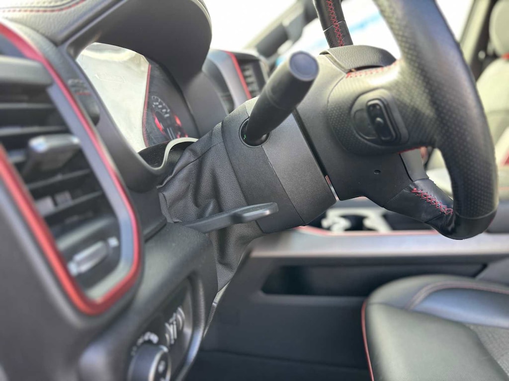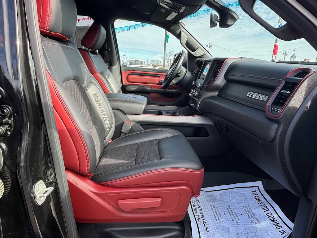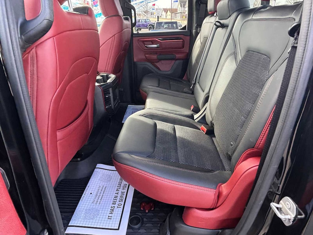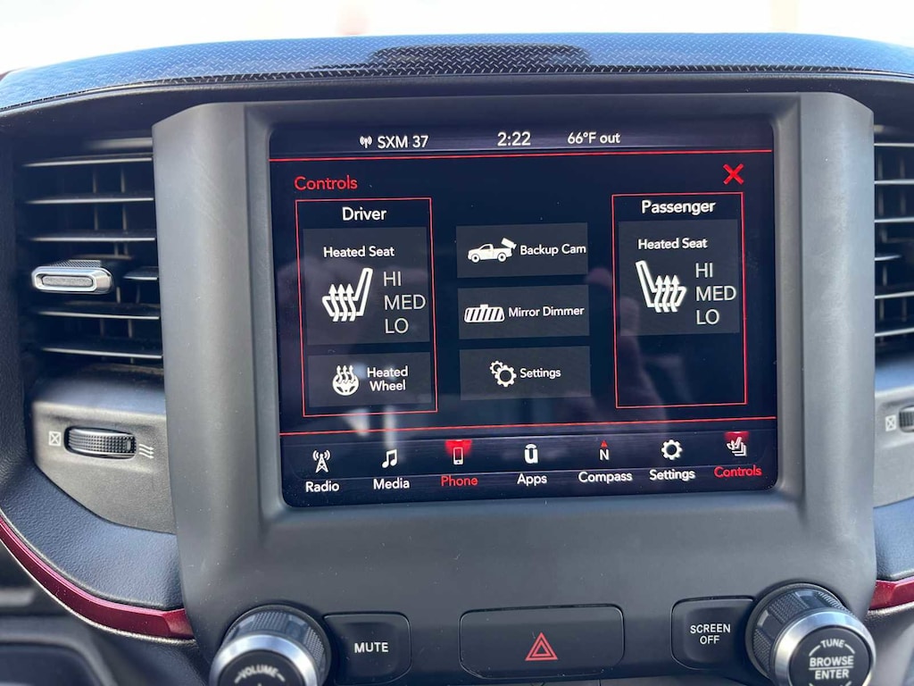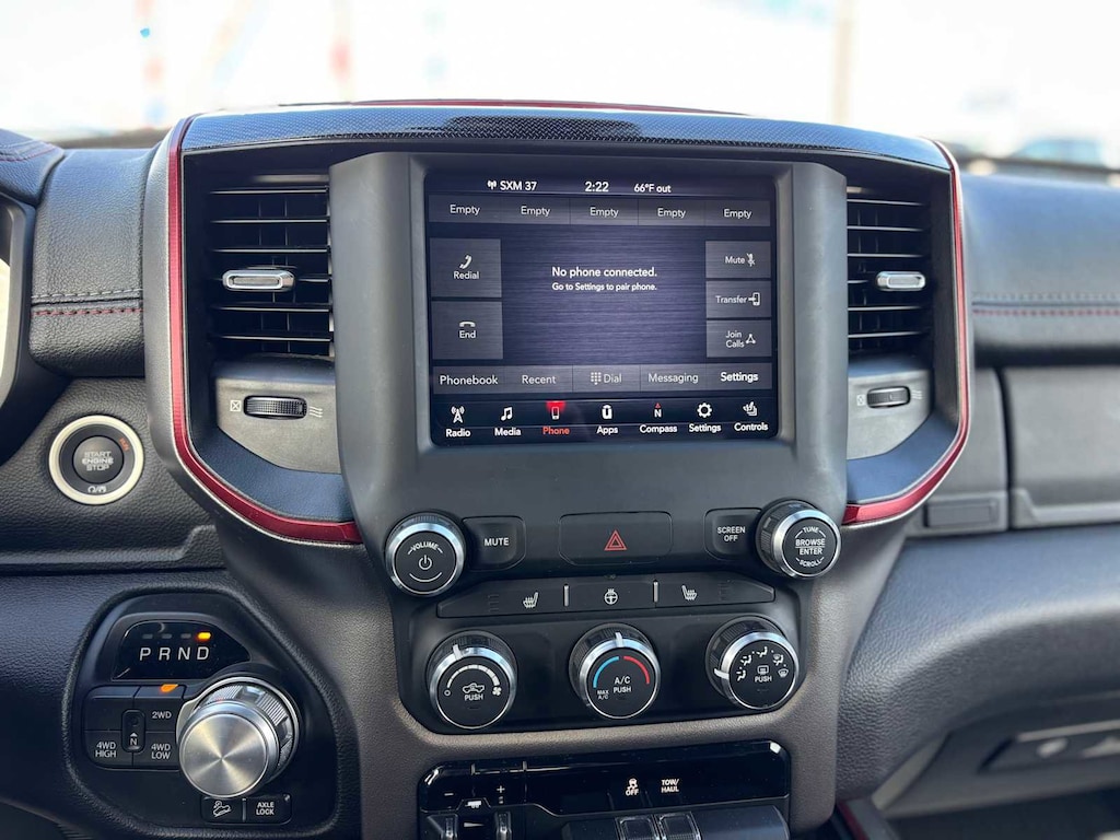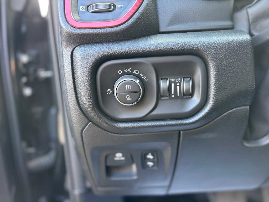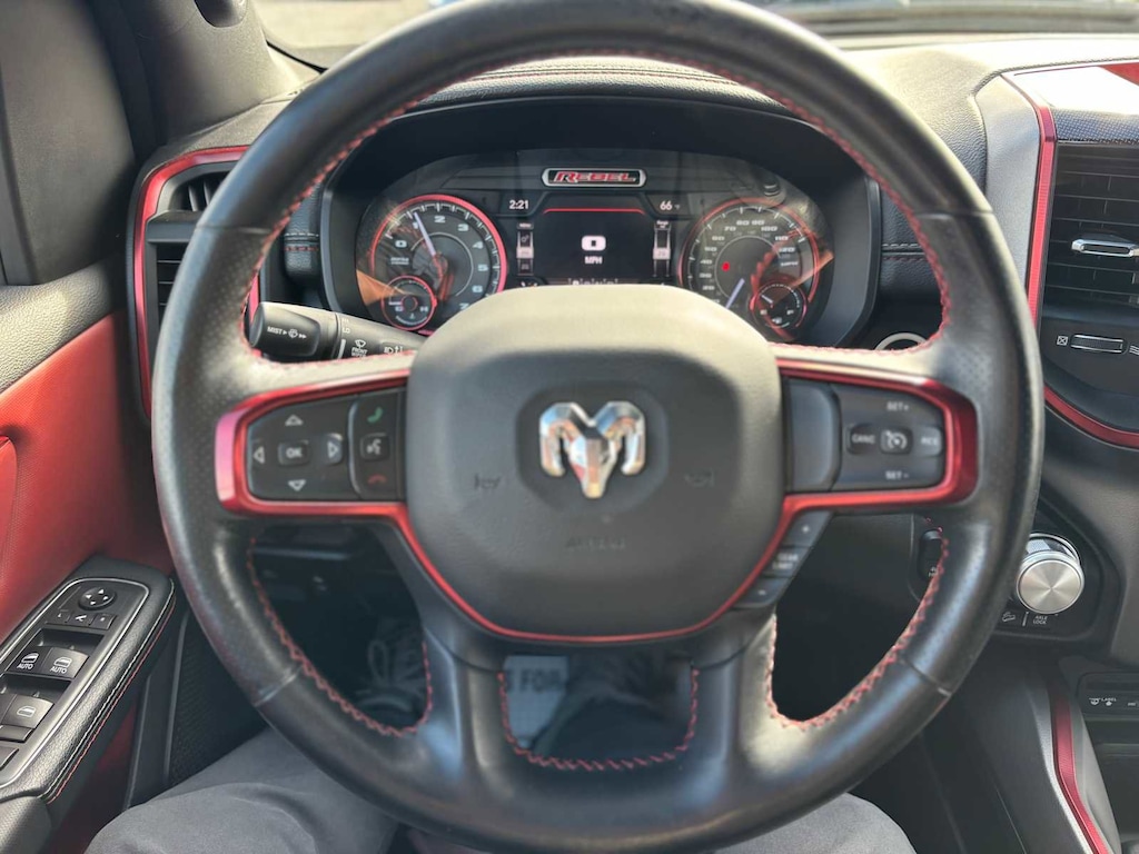 LEVEL 1 EQUIPMENT GROUP Rear Window Defroster, Auto-Dimming Rearview Mirror, Integrated Centre Stack Radio, Power Adjustable Pedals, Universal Garage Door Opener, Front Heated Seats, Heated Steering Wheel, 8.4 Touchscreen, Door Trim Panel Foam Bottle Insert, Single-Disc Remote CD Player, Sun Visors w/Illuminated Vanity Mirrors, Radio: Uconnect 4 w/8.4 Display, ENGINE: 5.7L HEMI VVT V8 W/FUELSAVER MDS Active Noise Control System, Heavy-Duty Engine Cooling, Black Dual Exhaust Tips, HEMI Badge, 220 Amp Alternator, 98-Litre (21.6-Gallon) Fuel Tank (STD), SPRAY-IN BEDLINER, QUICK ORDER PACKAGE 25W REBEL Engine: 5.7L HEMI VVT V8 w/FuelSaver MDS, Transmission: 8-Speed Automatic, Rebel Instrument Cluster, Exterior Mirrors w/Turn Signals, Vinyl Door Trim Panel, Body Colour Door Handles, Exterior Mirrors w/Courtesy Lamps, Auto-Dimming Exterior Driver Mirror, Electronic Shift-On-The-Fly Partime Transfer Case, Off-Road Group, Power Folding Exterior Mirrors, Fuel Tank Skid Plate, Black Power Fold Heated Mirrors w/Signals, Black Powder-Coated Front Bumper, Hill Descent Control, TRANSMISSION: 8-SPEED AUTOMATIC (STD). Ram Rebel with Diamond Black Crystal Pearl exterior and Red/Black interior features a V6 Cylinder Engine with 305 HP at 6400 RPM*. CLEAN AUTOCHECK!